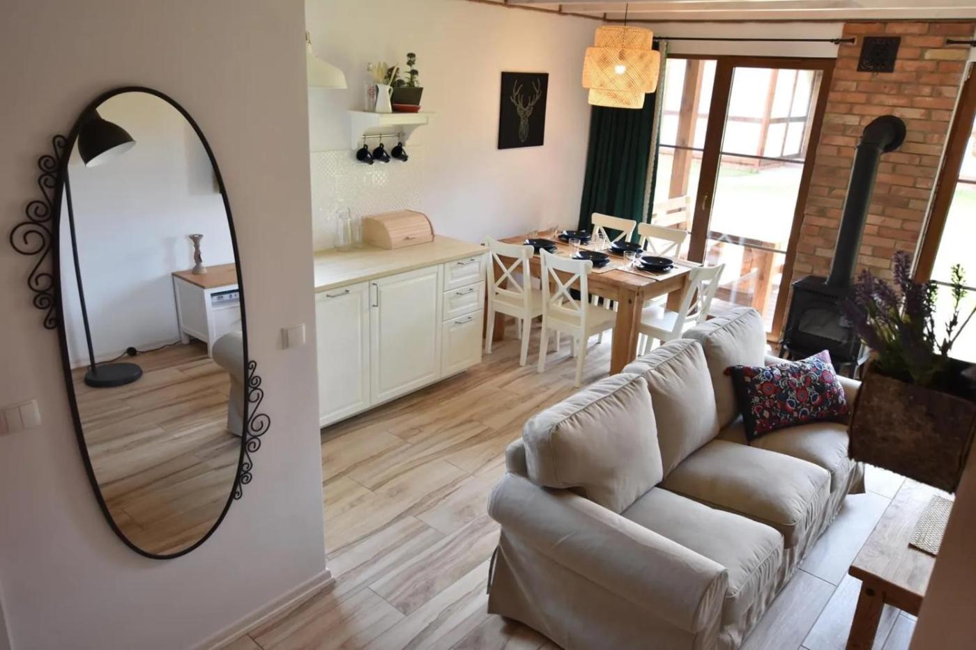Dom z 2 sypialniami. The fireplace is the standout feature of this holiday home. The holiday home has 2 bedrooms, 2 bathrooms and a kitchenette. Guests will find a refrigerator, a dishwasher and an oven in the kitchenette. The holiday home also comes with a barbecue. The holiday home features a terrace. The unit has 3 beds. Dom wakacyjny - 5 osobowy. Powierzchnia pokoju ok.: 67 mkw.