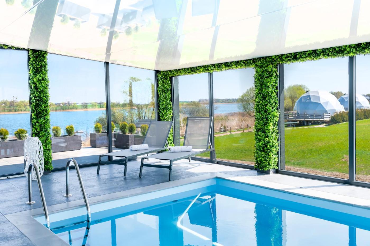 Dom wakacyjny. This holiday homes special features are the pool with a view and the fireplace. Featuring a private entrance, this air-conditioned holiday home consists of 1 living room, 3 separate bedrooms and 2 bathrooms with a walk-in shower and a bath. Guests will find a stovetop, a refrigerator, a dishwasher and kitchenware in the well-fitted kitchen. The holiday home also offers a barbecue. The spacious holiday home provides a tea and coffee maker, a seating area, a dining area as well as a terrace with lake views. The unit offers 6 beds. Dom wakacyjny - 8 osobowy. Powierzchnia pokoju ok.: 150 mkw. ;