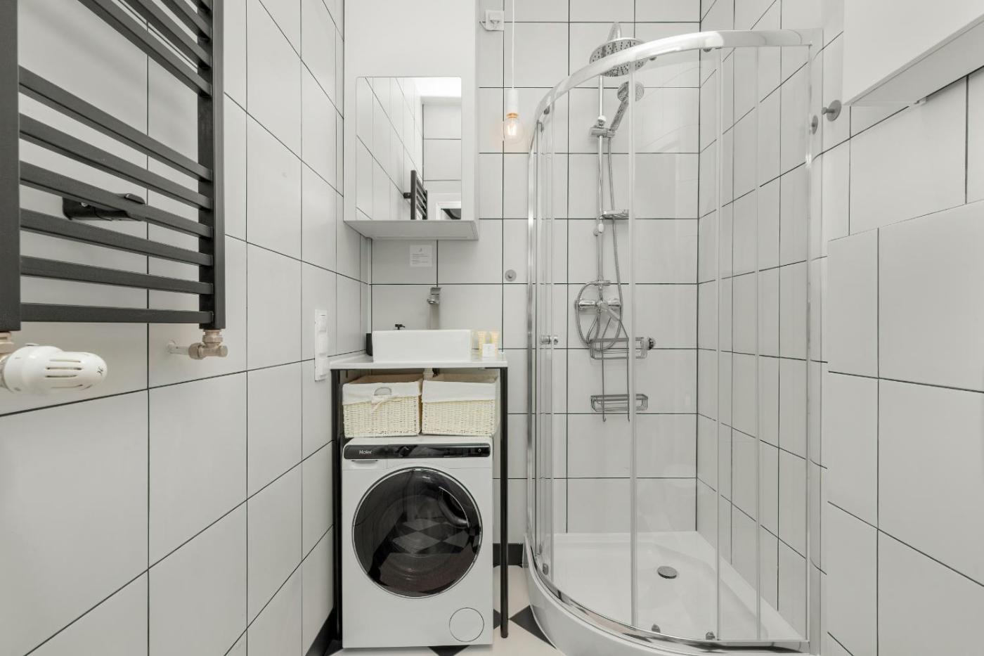 Studio. Providing free toiletries, this studio includes a private bathroom with a shower and a hairdryer. Guests can make meals in the kitchenette that comes with a stovetop, a refrigerator, a dishwasher and kitchenware. The studio provides a flat-screen TV with streaming services, a washing machine, a private entrance, a tea and coffee maker as well as a quiet street view. The unit offers 2 beds. Studio - 4 osobowy. Powierzchnia pokoju ok.: 25 mkw.