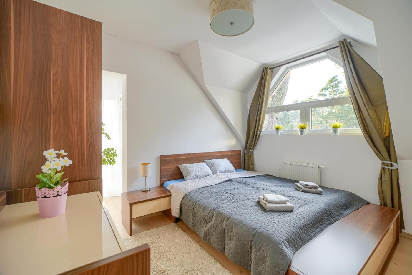 Willa. The fireplace is a top feature of this villa. Boasting a private entrance, this villa comes with 1 living room, 4 separate bedrooms and 2 bathrooms with a bath and a shower. Guests will find a stovetop, a refrigerator, a dishwasher and kitchenware in the kitchen. The villa also includes a barbecue. Featuring a terrace with garden views, this villa also features a coffee machine and a flat-screen TV with cable channels. The unit has 7 beds. Willa - 10 osobowy. Powierzchnia pokoju ok.: 110 mkw.