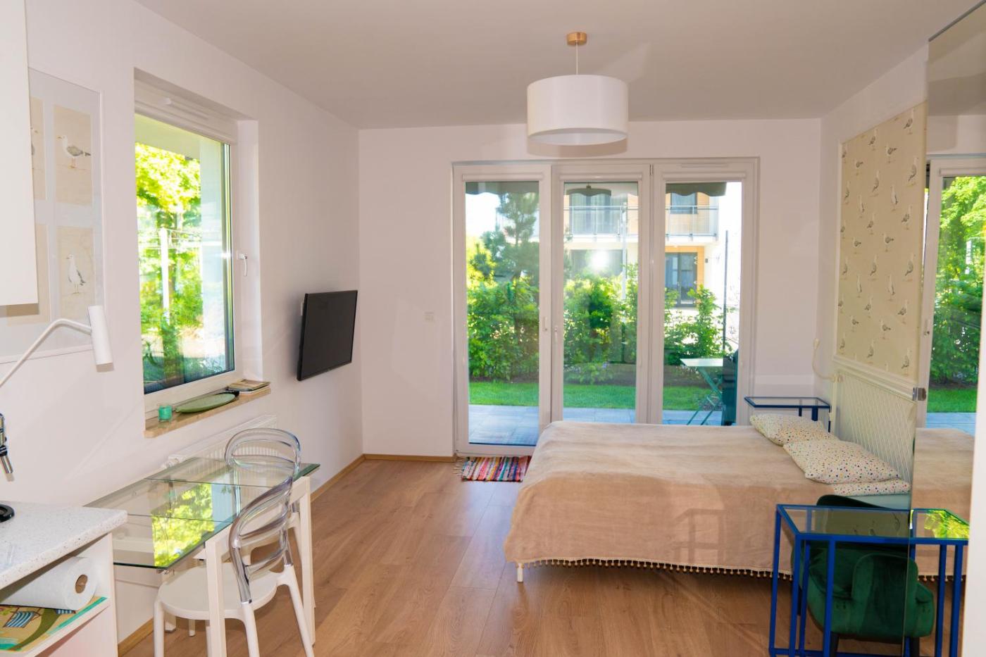 Apartament – parter. This apartment is comprised of 1 bedroom, a kitchenette and 1 bathroom with a shower and a hairdryer. In the well-equipped kitchenette, guests will find a stovetop, a refrigerator, a dishwasher and kitchenware. Featuring a balcony with sea views, this apartment also offers a tea and coffee maker and a flat-screen TV. The unit offers 1 bed. Apartament - 3 osobowy. Powierzchnia pokoju ok.: 26 mkw.