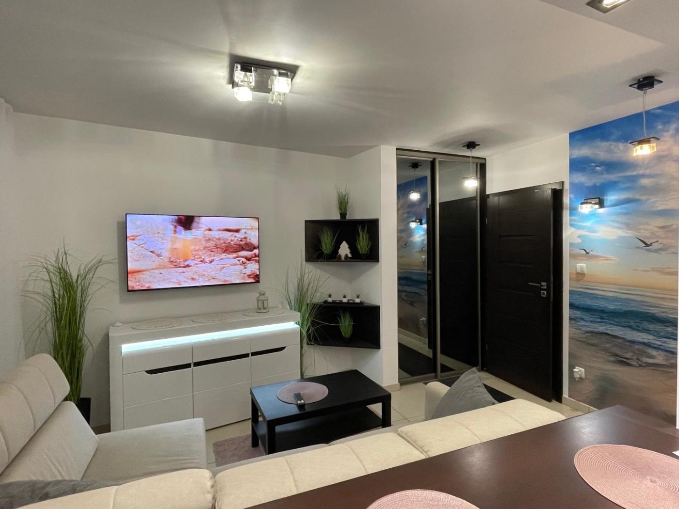 Apartament z 1 sypialnią. Guests can make meals in the kitchenette that features a stovetop, kitchenware, an oven and a microwave. The apartment features a washing machine, a wardrobe, an electric kettle, a flat-screen TV with cable channels, as well as ancourtyard view. The unit has 2 beds. Apartament - 4 osobowy. Powierzchnia pokoju ok.: 50 mkw.